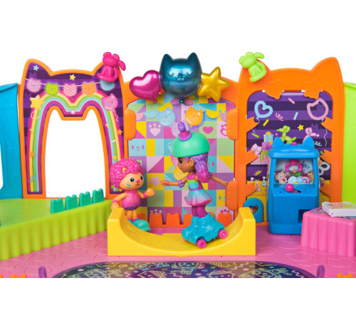 Разыграйте любимые сцены из сериала "Кукольный домика Габби" с набором Вечеринка. Этот по-кошачьи красочный игровой набор включает в себя двух персонажей и акцессуары - Габби в ее новом наряде для вечеринки на коньках и нового персонажа, кота Марти, воздушные шары, каток, на котором обе фигурки действительно могут кататься, и многое другое. Вы можете также присоединить набор Вечеринка к набору Кукольный домик Габби (продается отдельно).