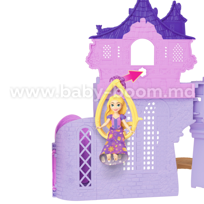 В этой компактной башне скрывается целый игровой мир: спальня с мольбертом, который превращается в сцену, балкон для мечтаний и качели в виде волос принцессы, которые можно прикрепить в разных частях башни.