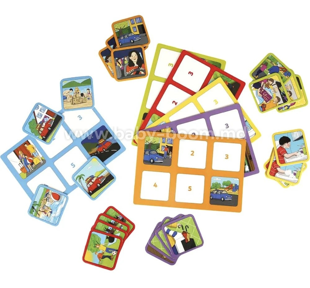 В игре 6 разных историй. Каждая история обрамлена рамкой другого цвета. Истории завершаются четырьмя квадратными картами. Например, чтобы завершить оранжевую историю, оранжевые квадратные карточки размещаются в соответствии с историей со ссылкой на первый и последний кадры.