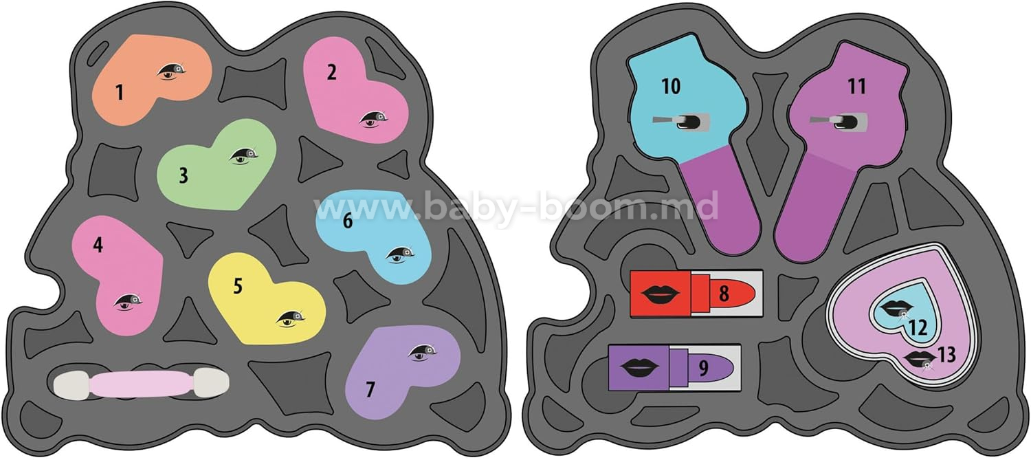 В косметичке есть два лотка с тенями для век, помадами и лаками для ногтей, чтобы вы могли каждый раз создавать новый и неповторимый макияж.