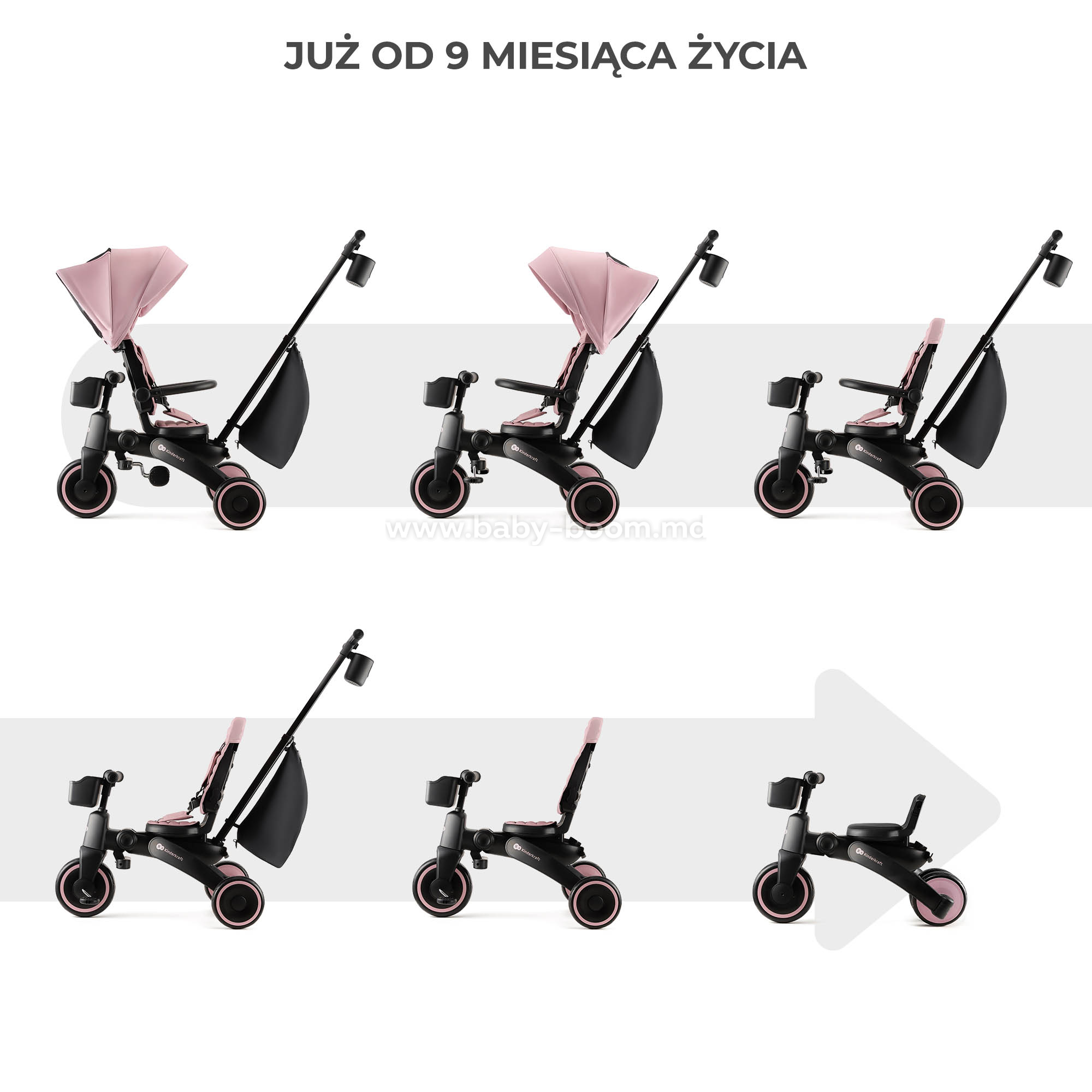 JAZZ 2 – многофункциональный трехколесный велосипед 5 в 1 для детей от 9 месяцев до 5 лет. Этот многофункциональный велосипед растет вместе с вашим ребенком, адаптируясь к его потребностям на каждом этапе развития.