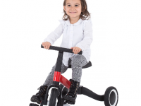 Легко трансформируется из трехколесного велосипеда в беговел с помощью системы щелчковых механизмов;